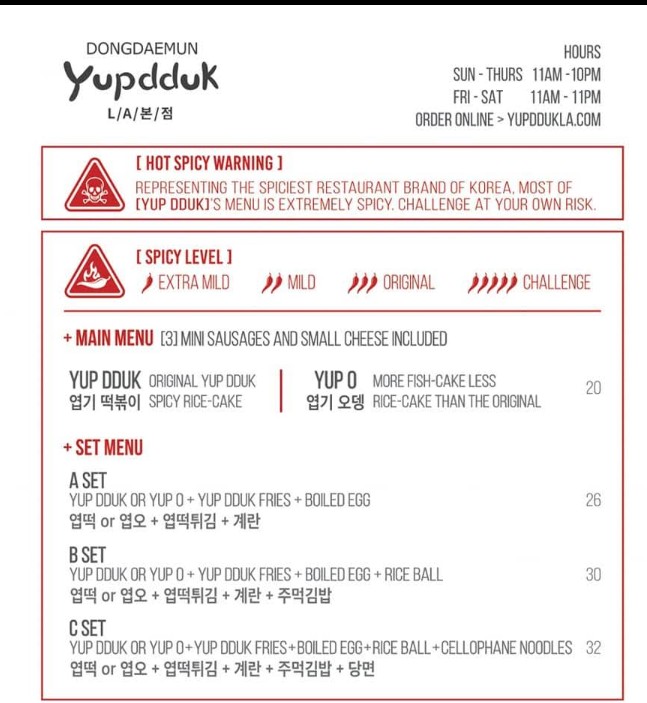 Welcome to Yup Dduk LA, where we serve delicious, authentic Korean cuisine right in the heart of Los Angeles! Known for our signature spicy rice and savory fish-cake dishes, our menu offers a range of flavorful Korean options that will satisfy every craving. Whether you're a longtime lover of Korean food or trying it for the first time, our menu offers something for everyone. Come experience a taste of Korea in every bite and enjoy a memorable meal with us today!